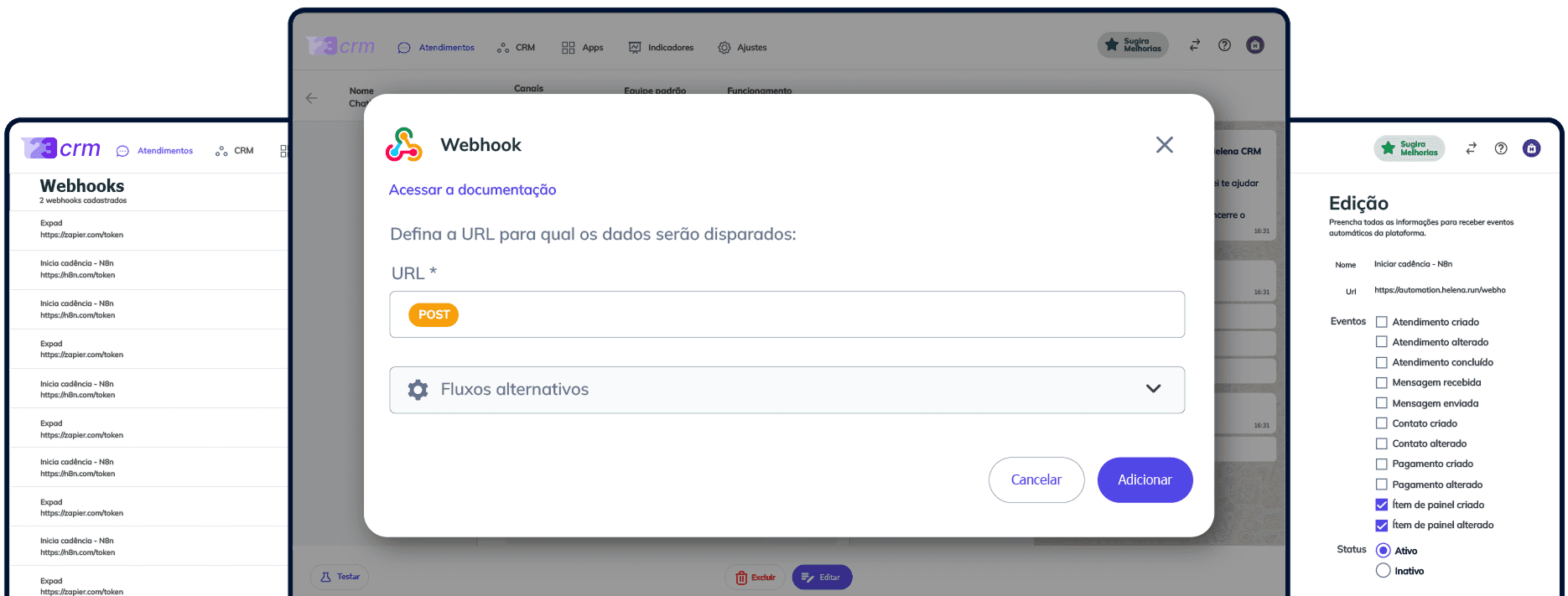 Utilize a nossa API e Webhooks para conectar com as suas plataformas. Possibilitando conexão com Hubspot, RD Station, Pipedrive entre outras