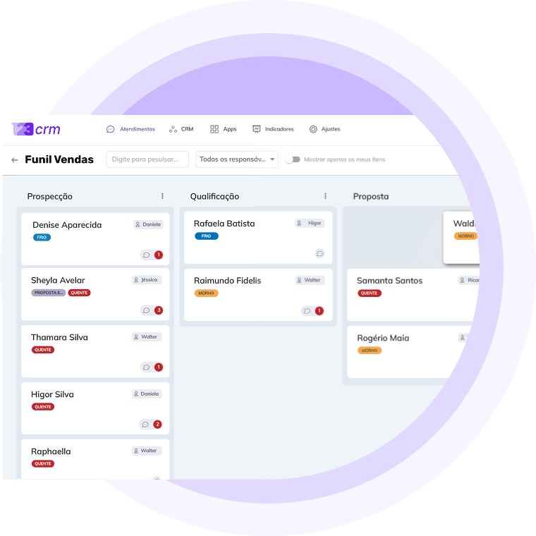 Saiba em qual etapa da jornada o seu cliente ou lead está, resolva problemas de forma ágil, crie Kanbans e funis conforme a sua necessidade, sempre atrelado às conversas