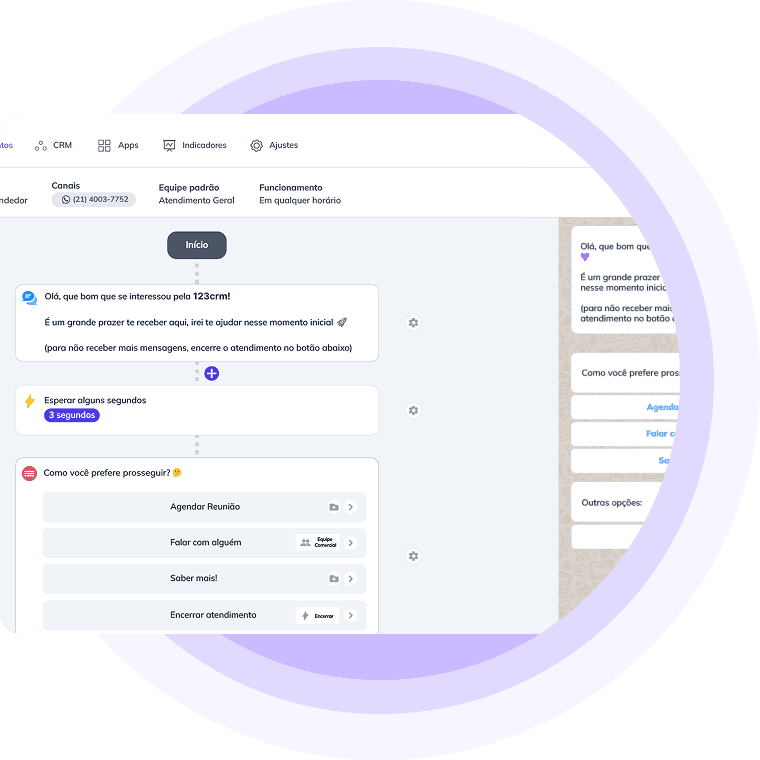 Com uma configuração descomplicada, você coloca o seu assistente virtual para trabalhar em minutos. Cada resposta fornecida pelo cliente torna-se parte integrante do contato, construindo uma qualificação do lead que acelera o processo de venda.
